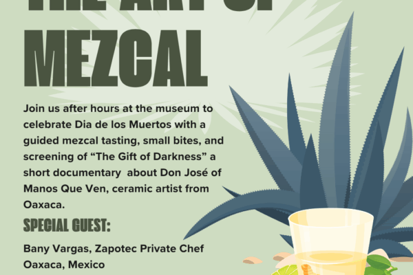 Join us after hours at the museum to celebrate Dia de los Muertos with a guided mezcal tasting, small bites, and screening of “The Gift of Darkness” a short documentary about Don José of Manos Que Ven, ceramic artist from Oaxaca.