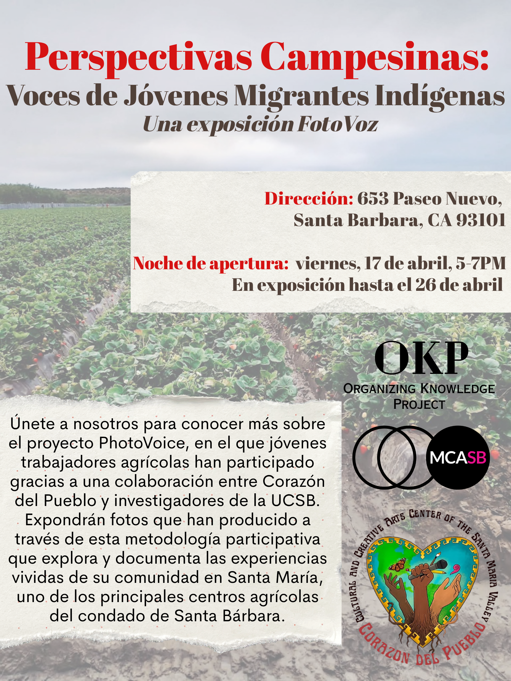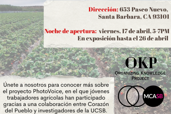 Únete a nosotros para conocer más sobre el proyecto PhotoVoice, en el que jóvenes trabajadores agrícolas han participado gracias a una colaboración entre Corazón del Pueblo y investigadores de la UCSB.