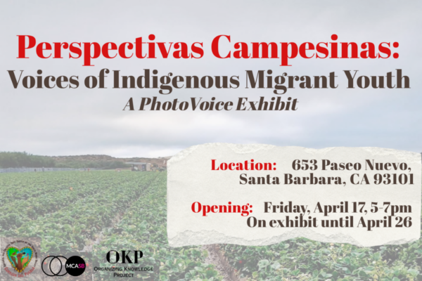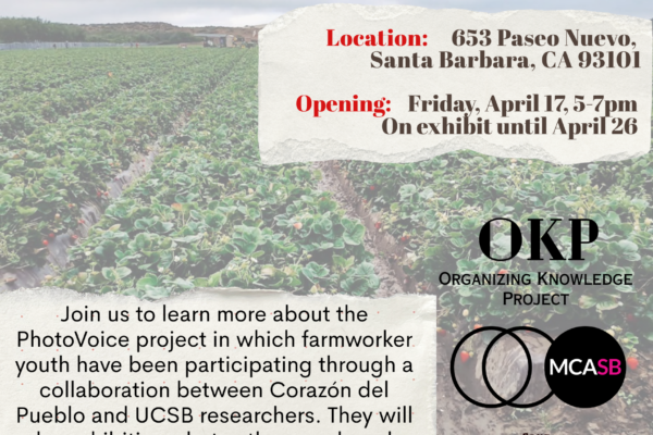 Join us to learn about the PhotoVoice project in which farmworker youth have been participating through a collaboration between Corazón del Pueblo and UCSB researchers.
